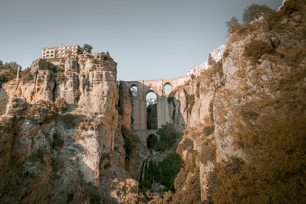 En el Puente Nuevo, un puente de piedra que se extiende sobre el desfiladero, hay un mirador con vistas.